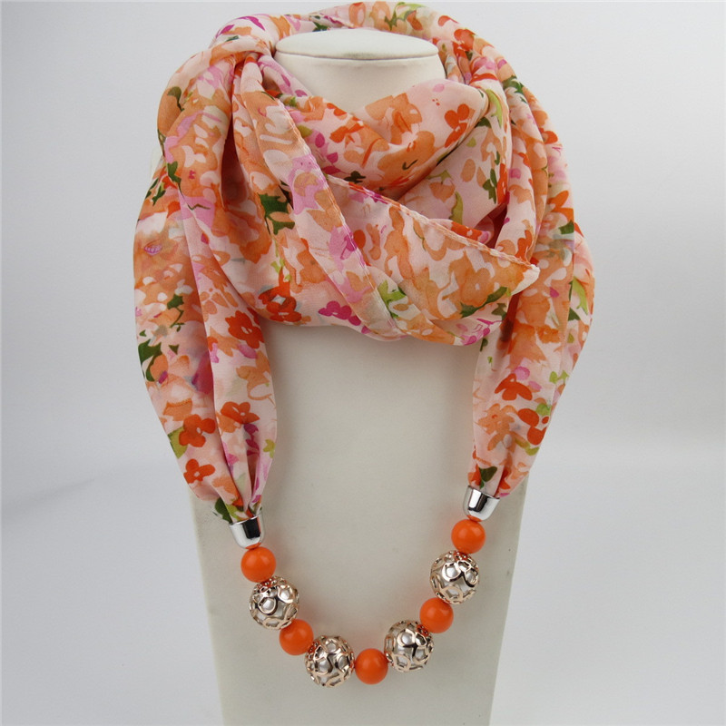 Flower Chiffon Scarf with Stone Pendants