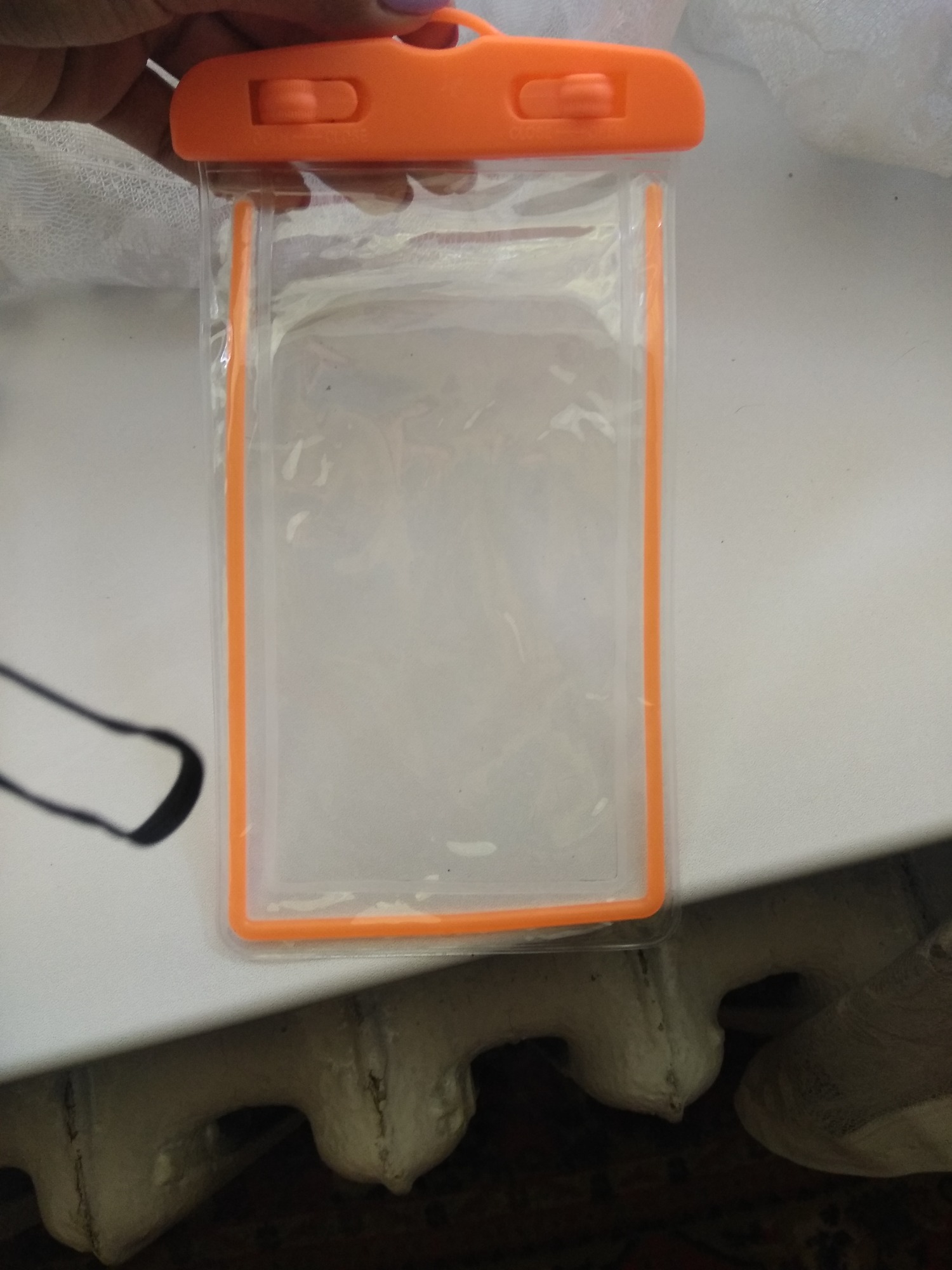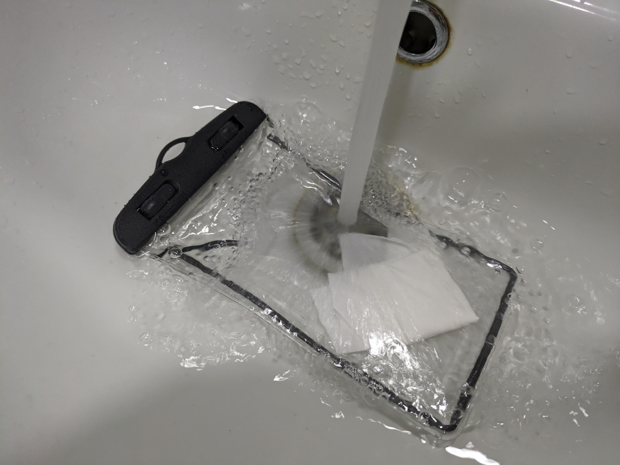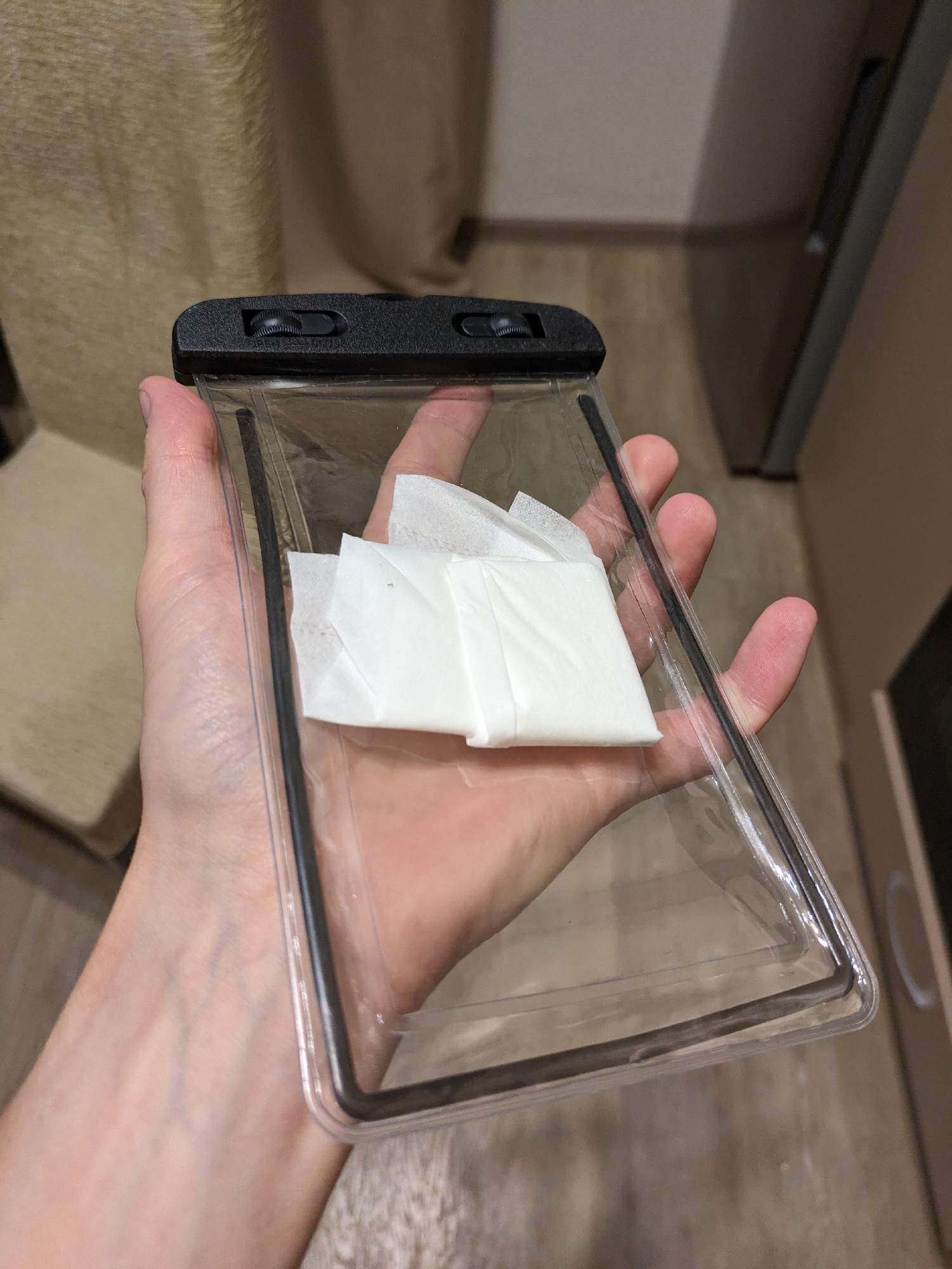 กรณีที่ดี-มันทำหน้าที่หลักของมันใส่กระดาษเช็ดปากด้านในและทำให้เคสเปียกผลลัพธ์ในภาพถ่ายคราบเปียกจากนิ้วมือไม่ใช่จากน้ำที่เข้าไปข้างในปกป้องบน100%