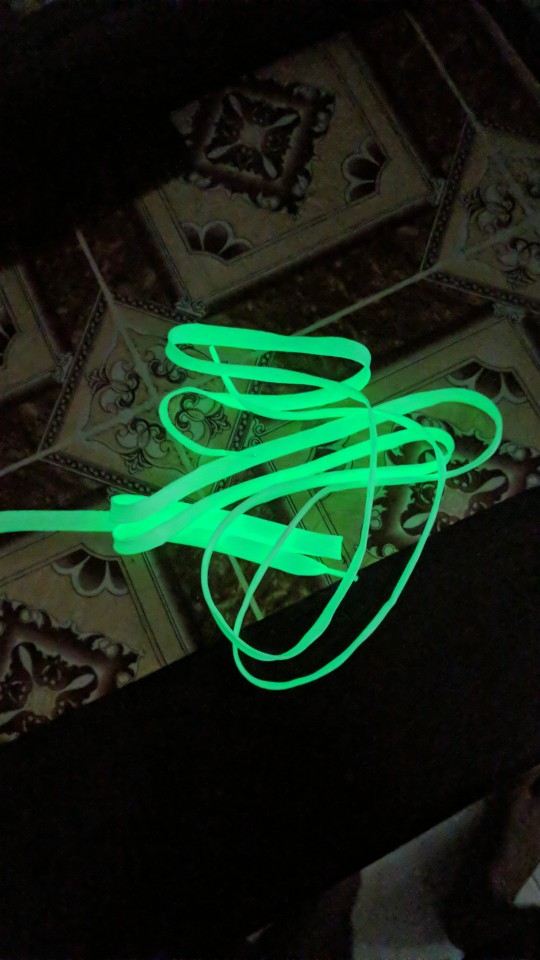 เชือกผูกรองเท้ามาทั้งหมดพวกมันเรืองแสงได้ดีตรงกับขนาดที่อธิบายไว้แต่มีกลิ่น