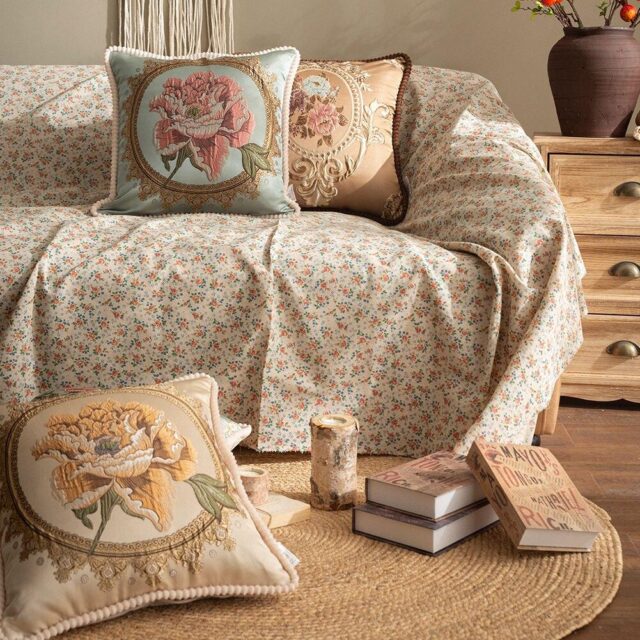 Luxury Floral Embroidered Cushion Cover