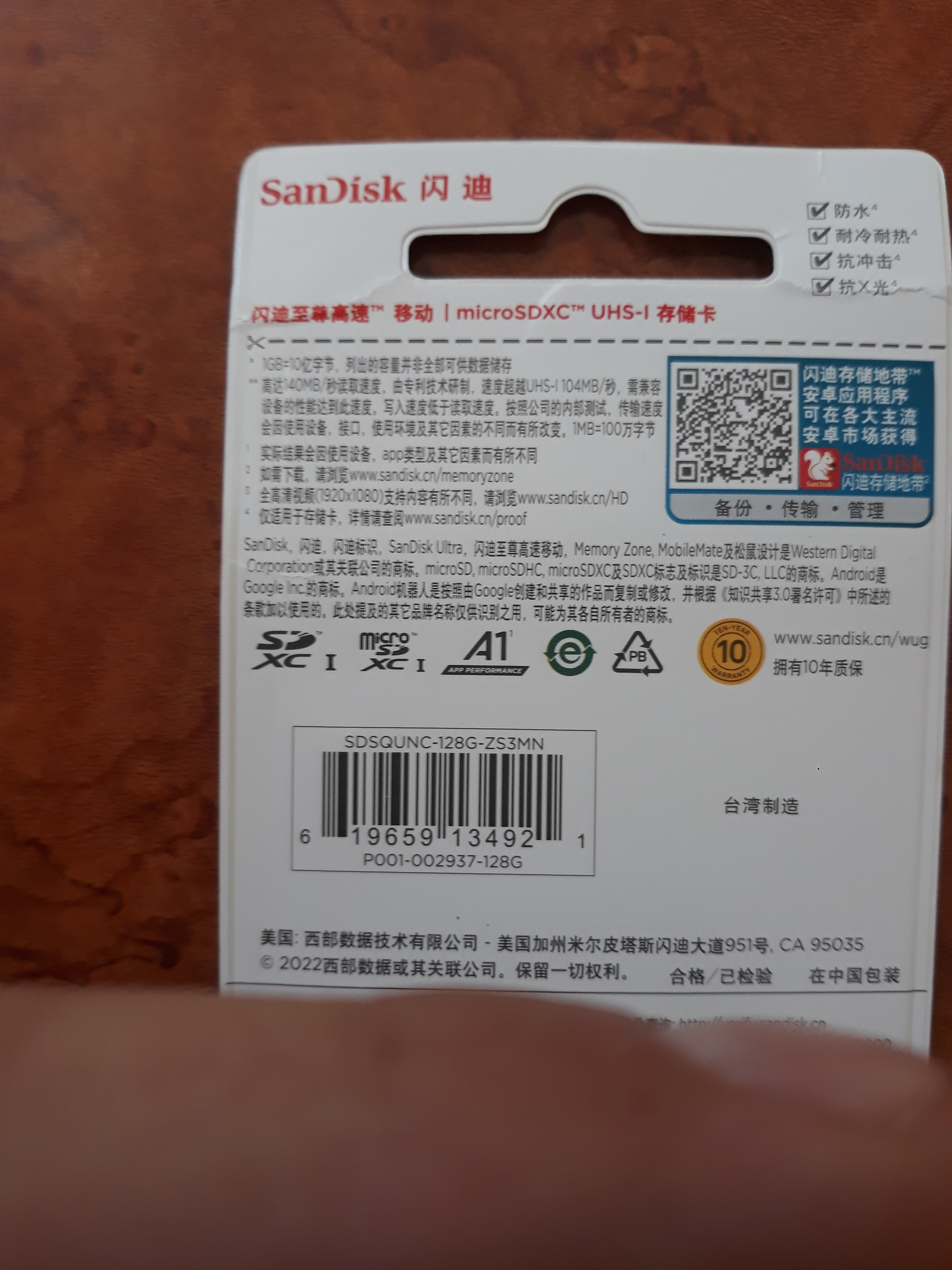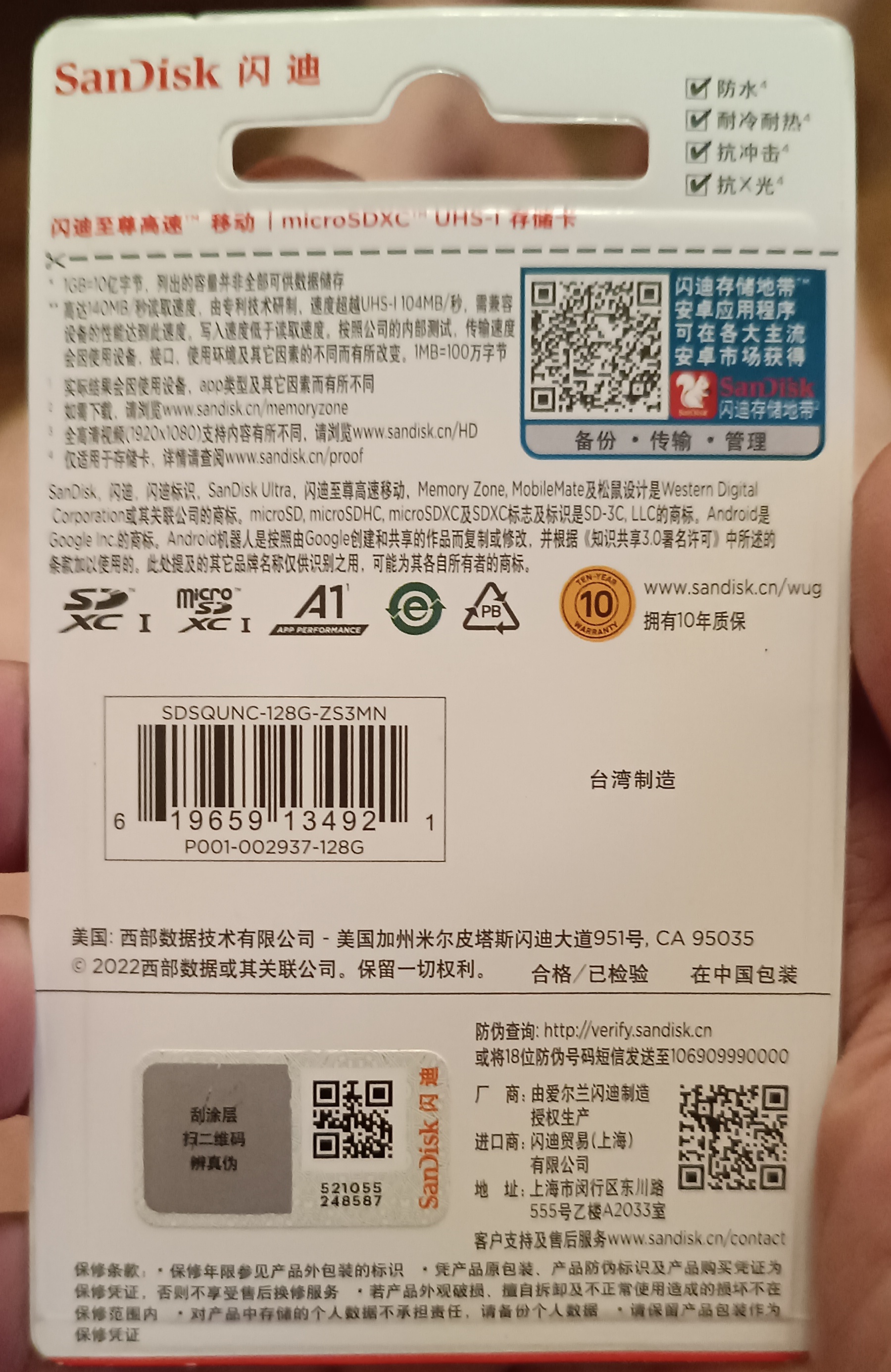 • Read/Write Speed: Class 10 UHS-1 U1 A1/s