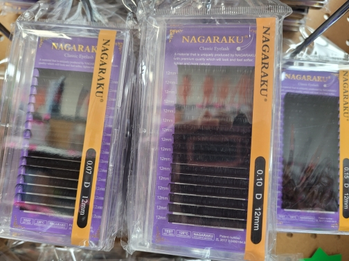 I combined handmade bouquets in 0.07 Nagaraku 10-13mm with prefabricated W bouquets in 6D for a very black and intense volume, and the result is incredible! They adhere very easily to the eyelashes. Bouquets very easy and flexible to shape.